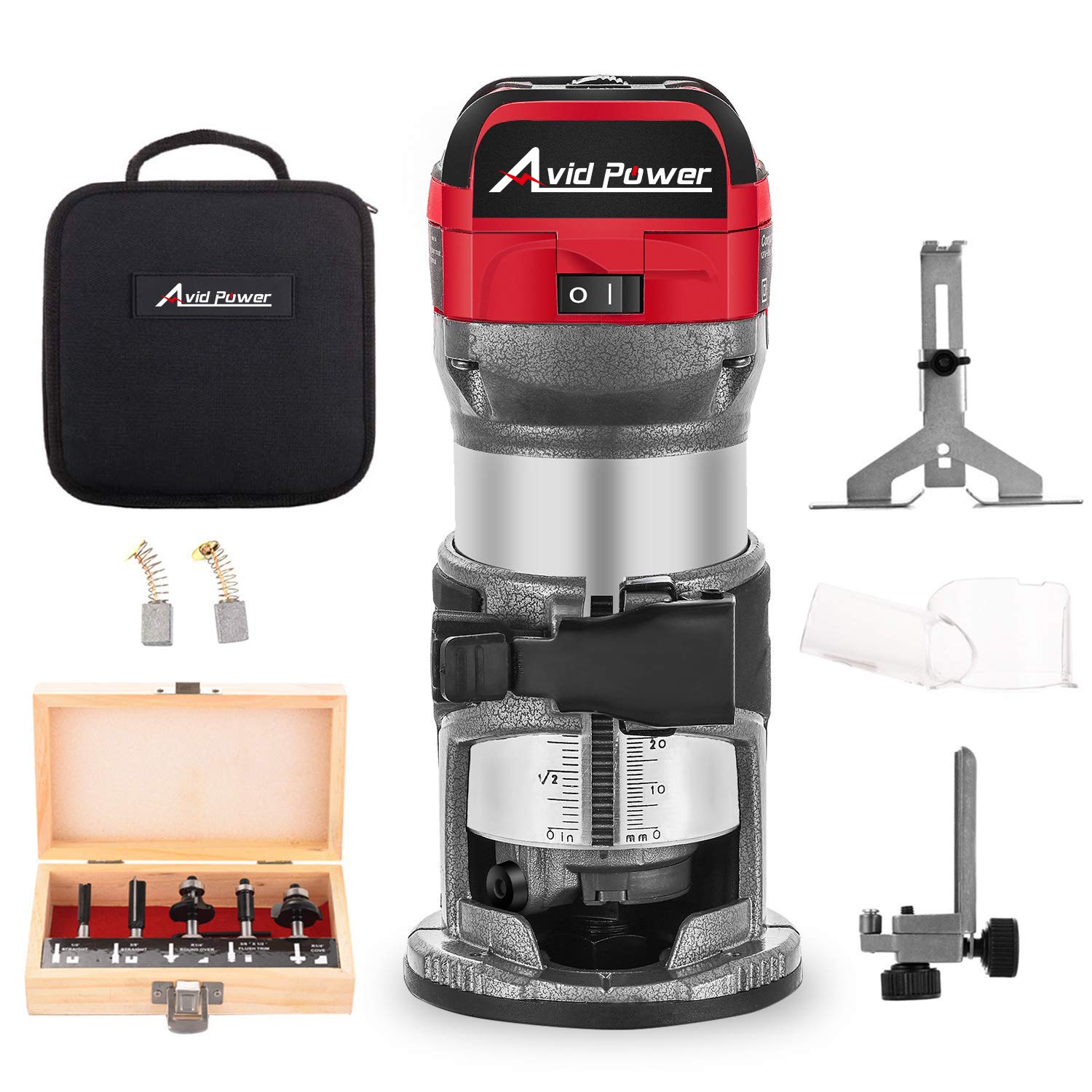 Real Title : Avid Power 6.5-Amp 1.25 HP Compact Router with Fixed Base, 5 Trim Router Bits, Variable Speed, Edge Guide, Roller Guide and Dust Hood, Avid Power MW104